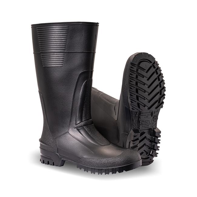 Bota de trabajo de PVC con diseño anatómico que proporciona una gran comodidad en el pie y la pierna. Son muy suaves y flexibles, incluso a bajas temperaturas. Ofrece una notable resistencia a ácidos, abonos y fertilizantes. Perfil frontal liso para reducir la acumulación de suciedad y facilitar su eliminación. Carcasa con diseño reforzado en talón, maléolo y puntera. La parte superior se puede acortar según el uso. El diseño simétrico de la banda de rodadura proporciona una excelente tracción sobre superficies secas y mojadas y favorece la flexión del pie. Las láminas de expulsión conducen los posibles residuos hacia los canales de drenaje durante la marcha, lo que favorece la autolimpieza de la suela y garantiza la máxima adherencia.