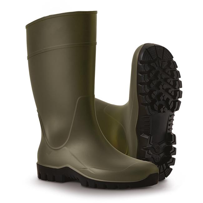 Bota de PVC altura rodilla, ligera y resistente, conforme a la norma UNI EN ISO 20347:2022. Diseñado para ofrecer comodidad y protección contra los agentes externos como el agua, el barro y los productos químicos ligeros. Suela antideslizante con perfil autolimpiante y resistencia a los hidrocarburos (FO). Parte superior impermeable y estructura ergonómica para el uso diario en ambientes húmedos o sucios. Sin puntera protectora.