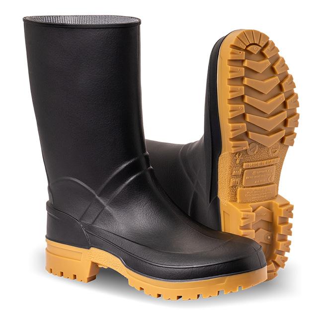 Stivale in PVC altezza tronchetto, pratico e flessibile, conforme alla norma UNI EN ISO 20347:2022. Garantisce impermeabilità e buona aderenza al suolo grazie alla suola con proprietà antiscivolo (SR). La struttura ridotta facilita il movimento mantenendo una valida barriera contro acqua e sporco. Ideale per attività in ambienti non estremi. Senza puntale protettivo.